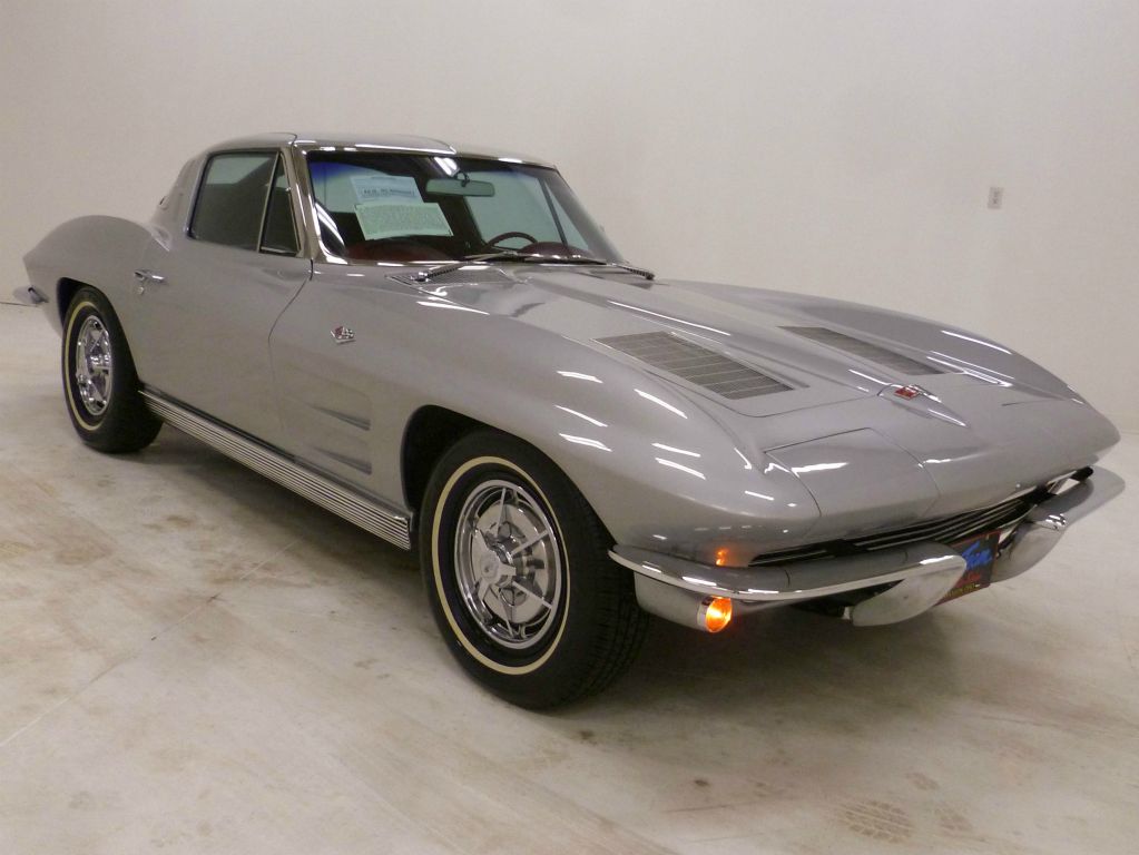 1016R..1963 Corvette Split Window Coupe, 327-300 hp, 4 speed, numbers matching original motor and transmission, also has factory original body/trim tag. Sebring Silver with Tuxedo Black interior. Body-on restored with recent 2024 engine rebuild. Very nice front end (appears no hit) with all bonding strips. Also has an affirmation by CCAS/Grenning as to the legitimacy and originality of the engine block, stamp pad, and the engine stamp. Recently purchased from owner of 2 to 3 years who purchased this car from a widow who owned for 41 years (1979). Optioned with T-10 transmission, 3.36 rear, Wonderbar radio, hubcaps, and white stripe radials. Most all factory correct type components including the spare, jack, jack tools, seat belts, washer system, shifter, shielding, air cleaner, alternator, spark plug shields, hoses, hose clamps, hood alignment blocks, valve covers, exhaust heat shields, gas door assembly, Bowtie mirror, glove box door, cookie tin hood, owners manual, and sales brochure. Documented with the CCAS/Grenning Engine Stamp Affirmation, engine rebuild receipts (2024), restoration photos/receipts, sales invoice dated 1979, manufacture literature, 1963 GM shop manual, and 3-ring binder. Today, the one-year only split window remains one of the most iconic designs in the history of the American automobile. Looks, runs, and drives excellent. CC:+2 $169,000.00